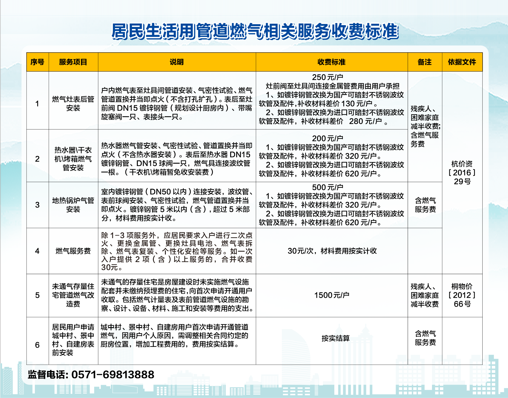 杭州市物价局关于核定居民生活用管道燃气相关服务收费标准的通知